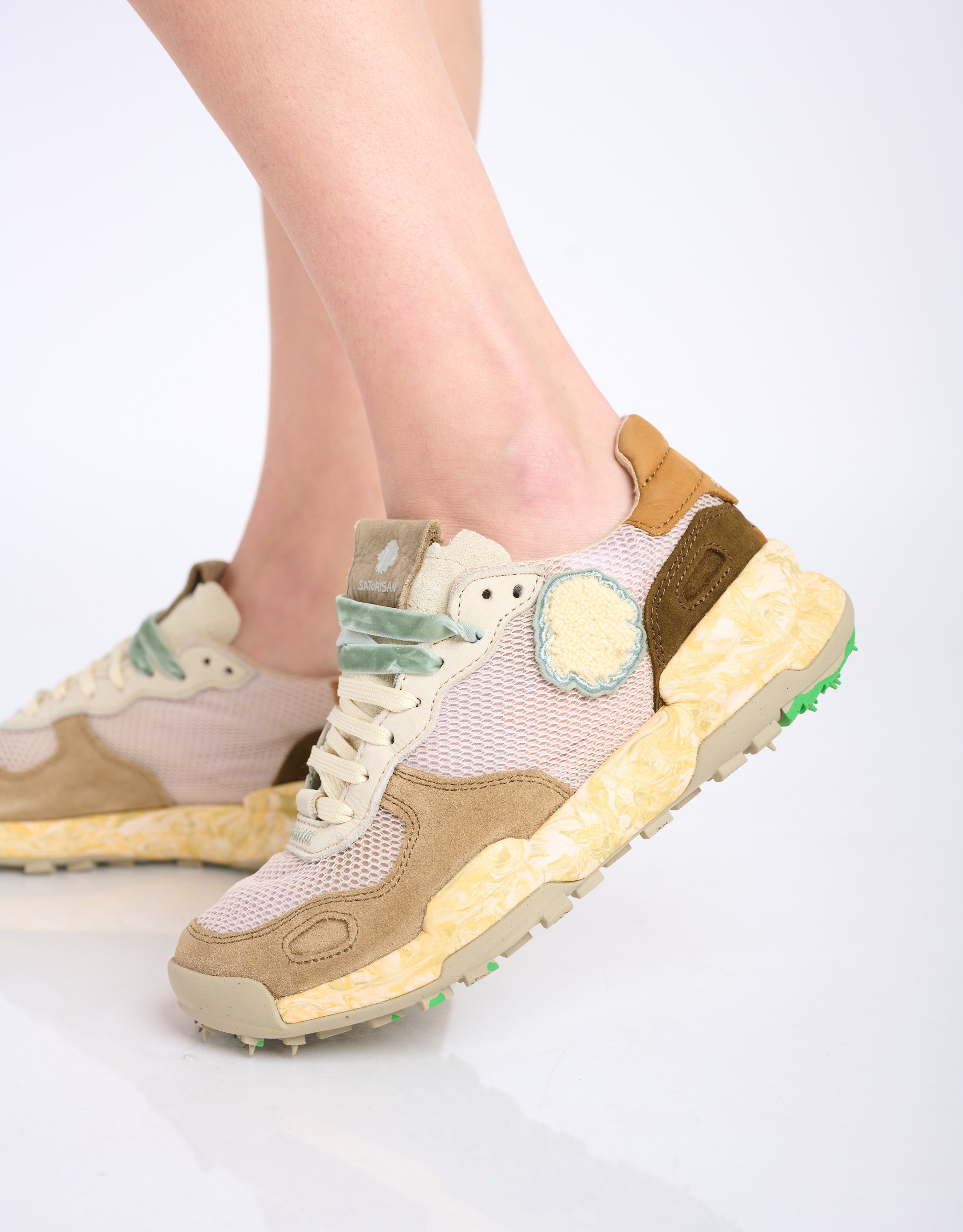 נעלי סניקרס של ארו מזמש בשילוב עור מחורר ושרוכי כותנה, הכל בשילובים מפתיעים ומשמחים.