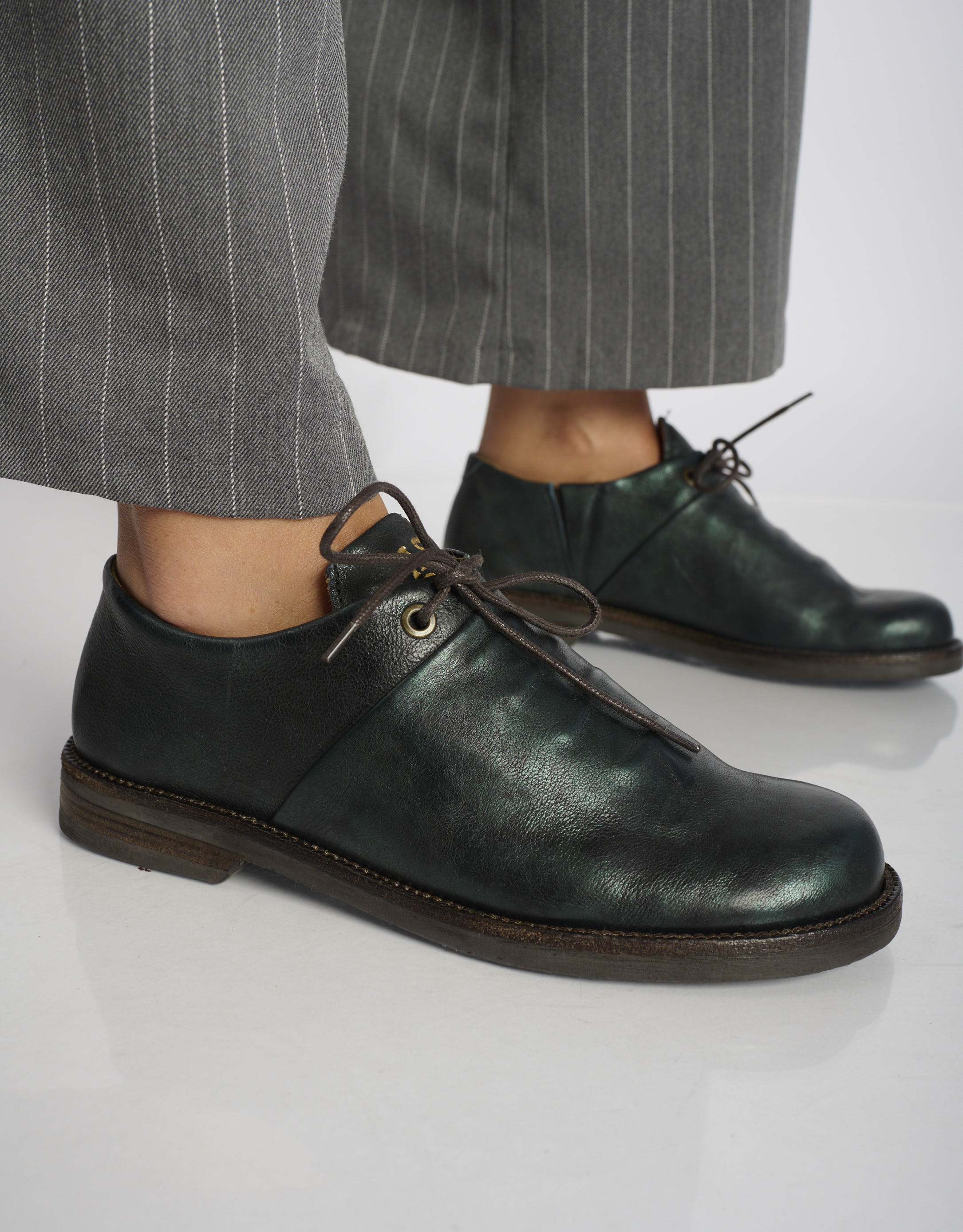 נעליים סגורות בסגנון אוקספורד, בעלות צבעוניות מטאלית ורמת גימור גבוהה, כיאה לסטנדרטים של איי.אס 98.