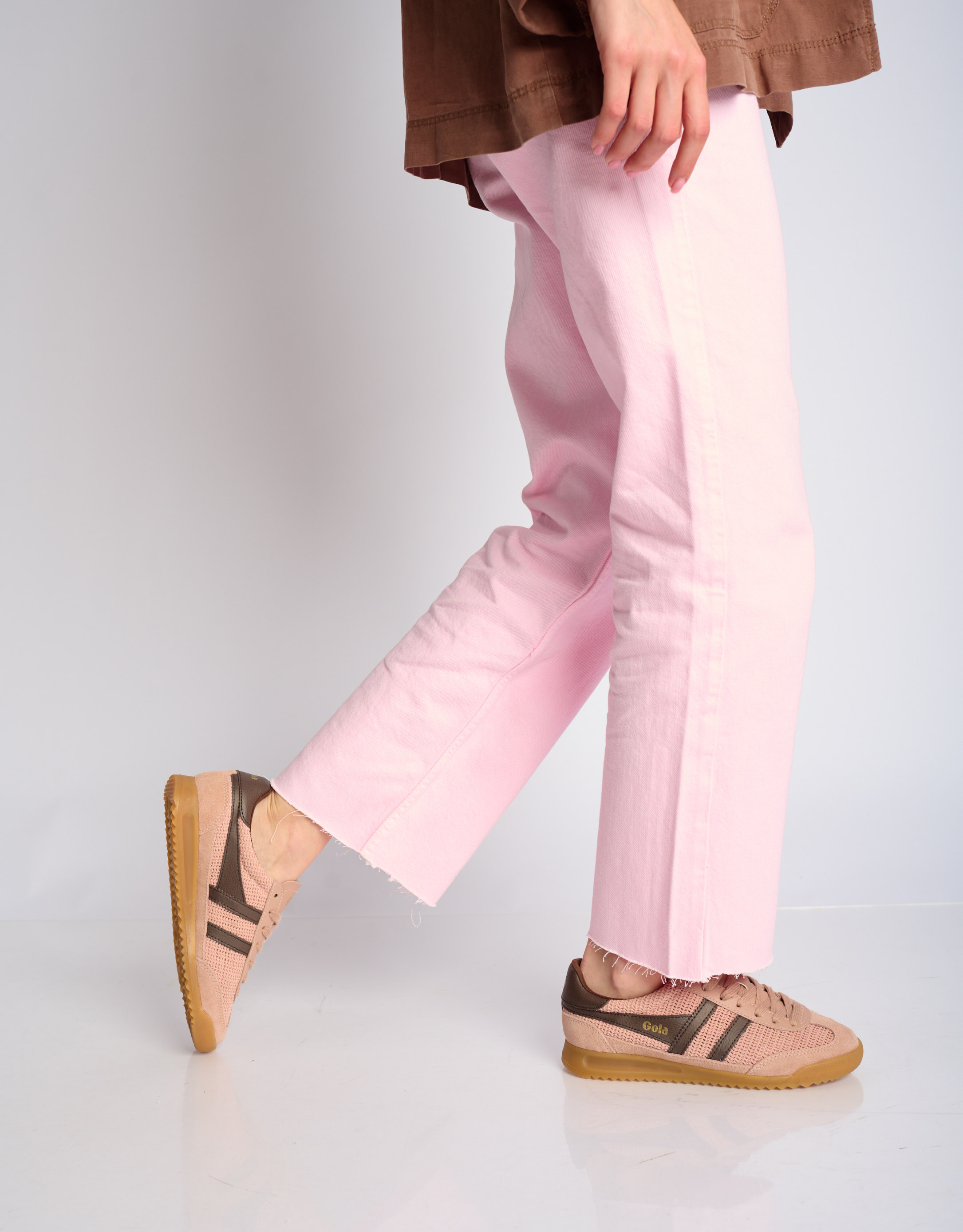 נעלי סניקרס קלאסיות עשויות שילוב של ניילון וזמש, בגוונים טבעיים.