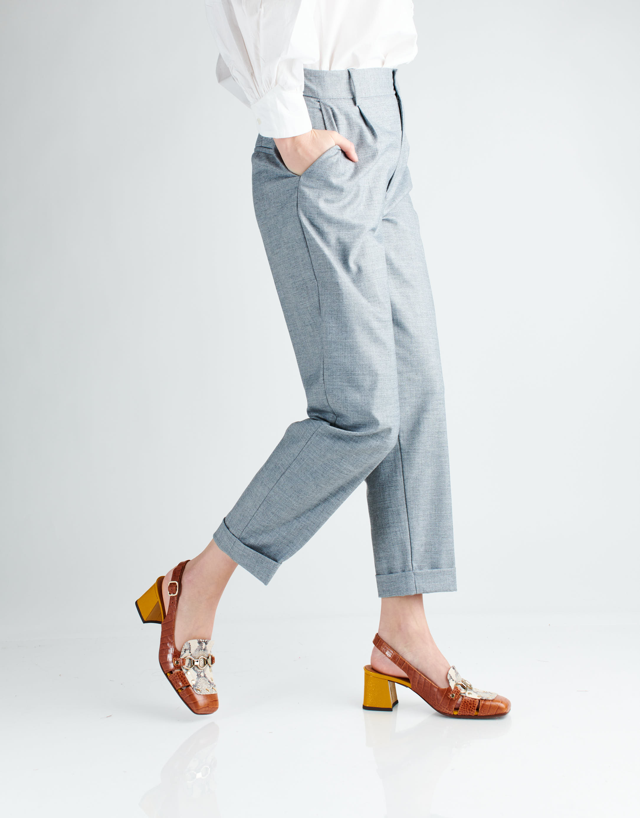 נעלי שפיץ מזמש, מאובזרות בעקב טרפזי. נעליים קלאסיות, אבל עם טוויסט.